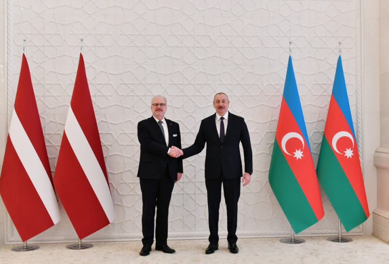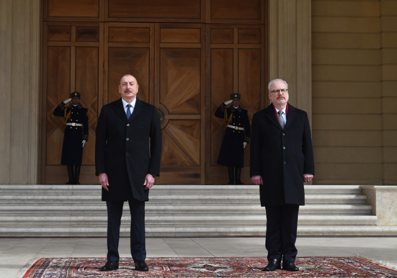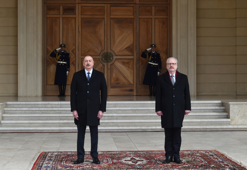 Azərbaycan Respublikasının Prezidenti İlham Əliyev Latviya Respublikasının Prezidenti Egils Levitsi qarşıladı.