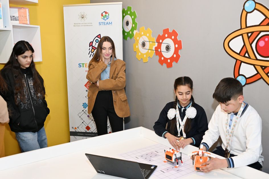 Daha sonra Quba STEAM mərkəzi ziyarət olunub. Mərkəzlə tanışlıq zamanı xatırladılıb ki, Birinci vitse-prezident Mehriban xanım Əliyevanın təşəbbüsü ilə Azərbaycan məktəblərində 2019-cu ildən etibarən STEAM (Science, Technology, Engineering, Art, Mathematics) layihəsinin geniş tətbiqinə başlanılıb. Qeyd olunub ki, STEAM mərkəzi Qubada 2021-ci ildən fəaliyyət göstərir və bütün yaş qrupları üçün nəzərdə tutulub. Leyla Əliyeva və Alena Əliyeva mərkəzdə yaradılan şəraitlə yaxından tanış olub, şagirdlərlə səmimi söhbət aparıb, onların burada əldə etdikləri bilik və bacarıqların praktiki tətbiqi ilə maraqlanıblar.