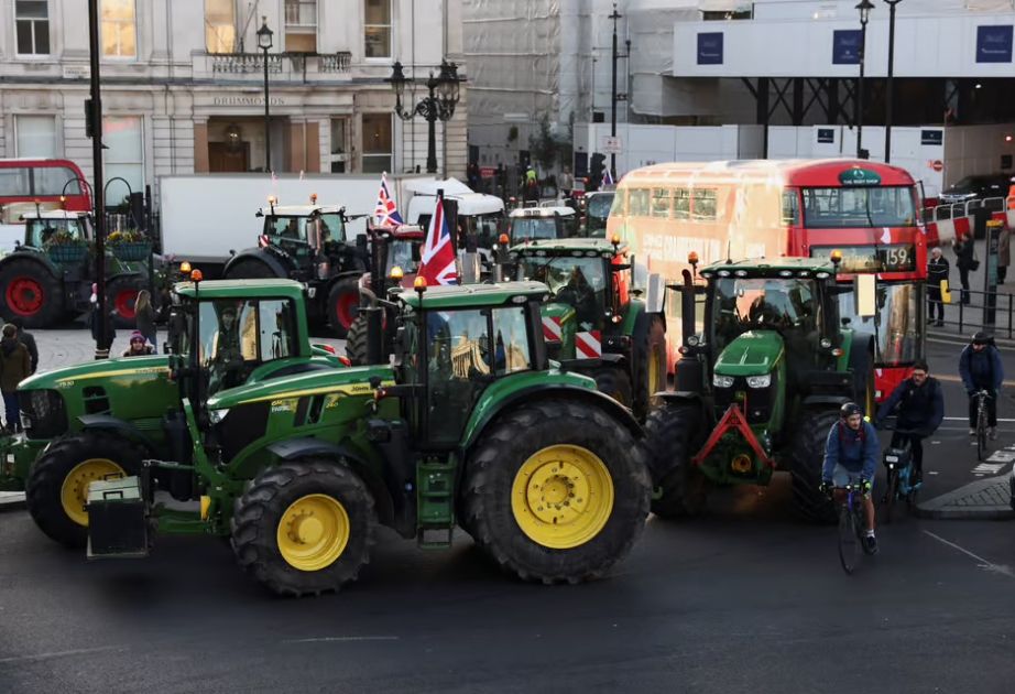 Londonun mərkəzində fermerlər traktorlarla etiraz aksiyası keçirib