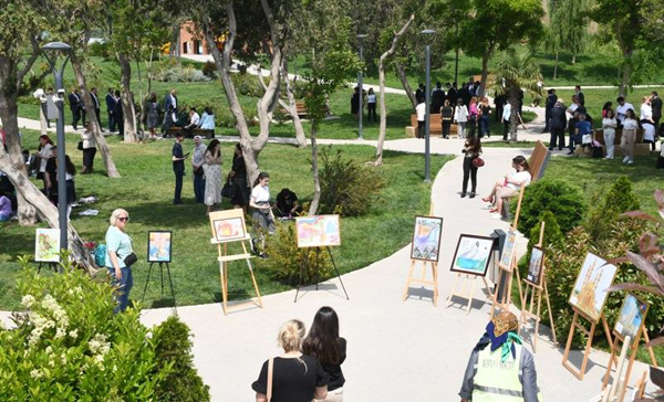 Bayramsayağı bəzədilmiş "Nizami Gəncəvi" adına mədəniyyət və istirahət parkında Ulu Öndər Heydər Əliyevin 100 illik yubileyinə həsr olunmuş "Ulu Öndəri düşünərkən" adlı rəsm müsabiqəsində fərqlənən rəssamların əl işlərindən ibarət sərgi və müsabiqənin yekun mərasimi təşkil edilib. İştirakçıların rəsmləri tədbirin qonaqları və parka toplaşan paytaxt sakinləri tərəfindən böyük maraqla qarşılanıb. Gənc rəssamlar öz əsərlərinin nümayişi zamanı tamaşaçılara əsərləri ilə bağlı izahlar veriblər.