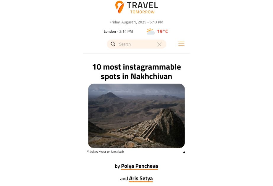 Avropa İttifaqının (Aİ) məşhur turizm nəşri “Travel Tomorrow” Naxçıvanın gəzməli-görməli yerləri, turizm məkanları ilə bağlı paylaşım edib.