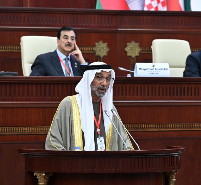 Tədbirdə çıxış edən Birləşmiş Ərəb Əmirliklərinin Federal Milli Şurasının sədri Saqr Qobaş Azərbaycan Konstitusiyasının qəbul edilməsinin 30-cu ildönümü münasibətilə təbriklərini çatdıraraq, ölkənin suverenliyinin möhkəmləndirilməsi, dayanıqlı inkişafın təmin edilməsində Konstitusiyanın rolunu qeyd edib. Son 30 il ərzində Azərbaycanda milli iradə, siyasi uzaqgörənlik sayəsində hərtərəfli inkişafın müşahidə olunduğunu söyləyib. Bildirib ki, Azərbaycan təcrübəsi Konstitusiyanın cəmiyyət və dövlət arasında münasibətləri tənzimləyən, dövlətin konstitusion quruluşunu təsbit edən, ölkənin iqtisadi, siyasi, sosial, xüsusiyyətlərini özündə əks etdirən, habelə regional və beynəlxalq münasibətlərdə mövqeyini müəyyən edən bir sənəd olduğunun bariz nümunəsidir.