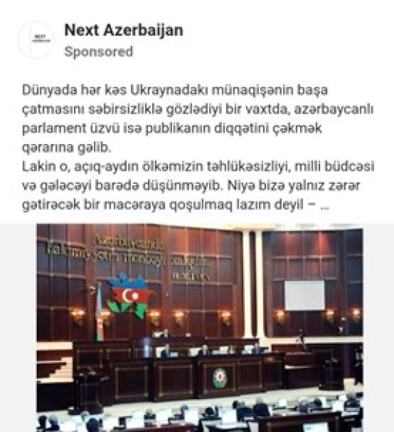 Dezinformativ xarakterli və təxribatçı fikirləri əks etdirən kampaniya vahid mərkəzdən idarə olunmaqla yeni yaradılmış “Caspian Xəbər”, “Caspian Times”, “İşıq Media”, “Pro Eminent Guild”, “Next Azerbaijan” və sair bu kimi səhifələr vasitəsilə həyata keçirilib.