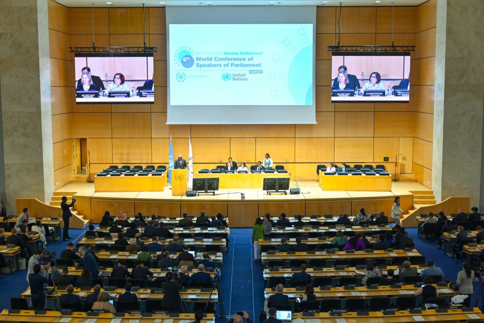 Milli Məclisin sədri Parlament Sədrlərinin 6-cı Dünya Konfransında ümumi müzakirələrə sədrlik edib