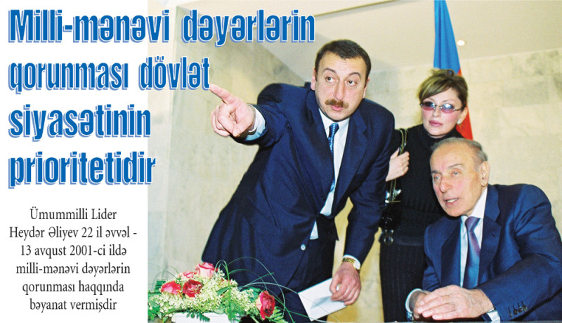 Ümummilli Lider Heydər Əliyev 22 il əvvəl - 13 avqust 2001-ci ildə milli-mənəvi dəyərlərin qorunması haqqında bəyanat vermişdir