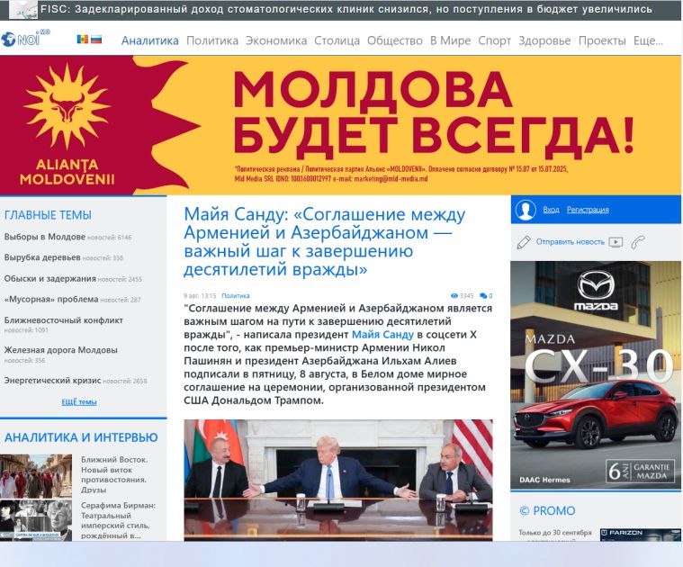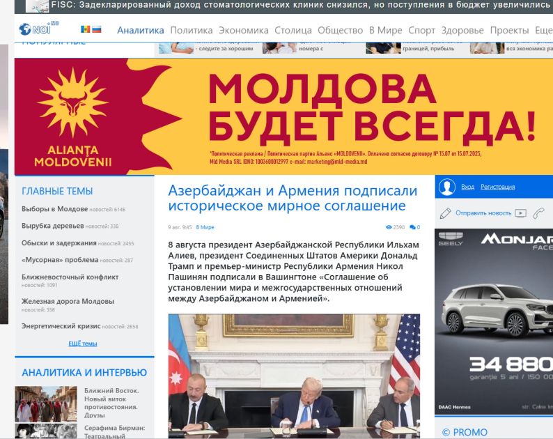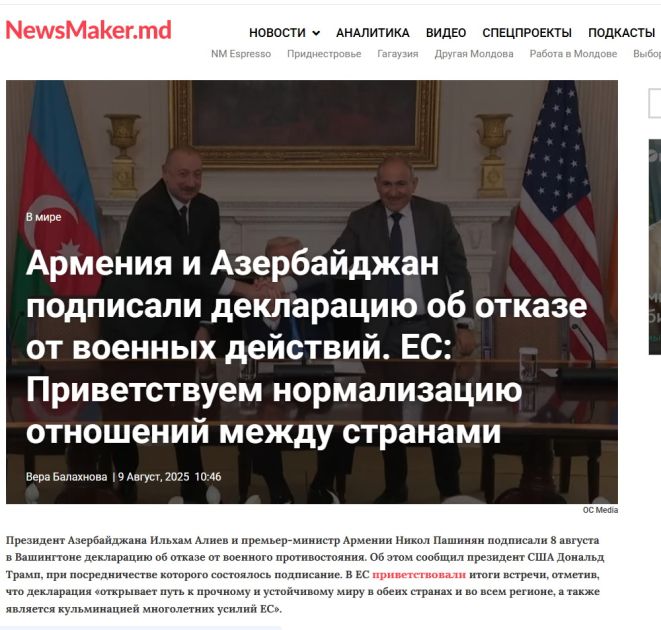 AZƏRTAC xəbər verir ki, “Noi.md”, “Point.md”, “Newsmaker.md” və digər xəbər portallarında dərc olunan məqalələrdə Azərbaycan ilə Ermənistan arasında münaqişənin həlli ilə bağlı bəyannamənin əhəmiyyətinə xüsusi yer verilib. Eyni zamanda, Azərbaycan Prezidenti İlham Əliyevin və Ermənistanın Baş naziri Nikol Paşinyanın ABŞ Prezidenti Donald Trampın vasitəçiliyi ilə Birgə Bəyannaməni imzalamalarının çoxillik münaqişəyə son qoyduğu və regionda əməkdaşlıq üçün yeni imkanlar açdığı qeyd edilib.
