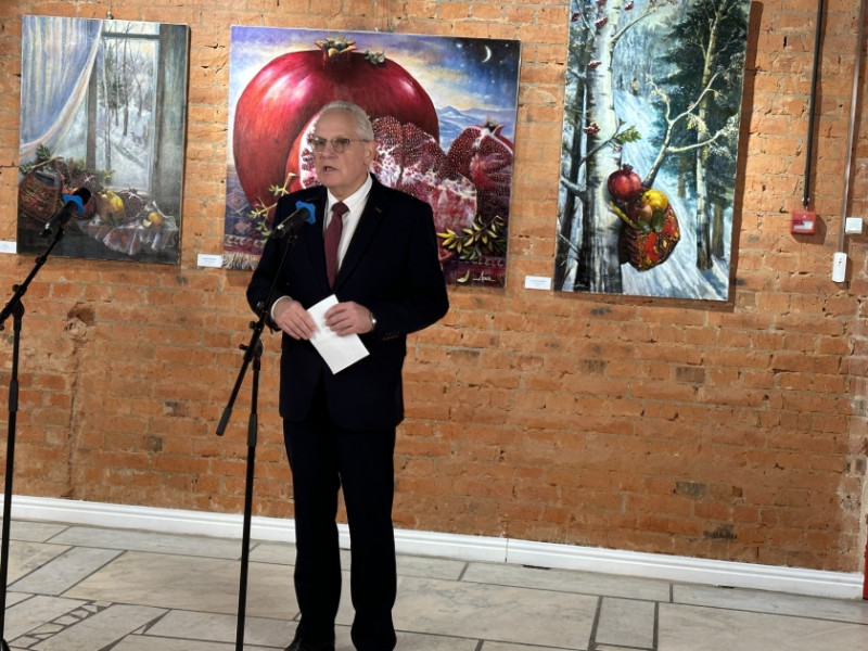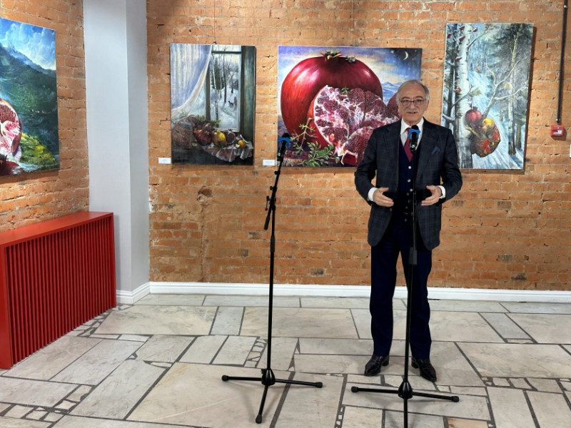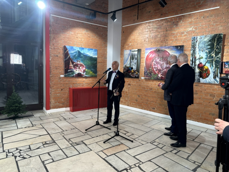 AZƏRTAC xəbər verir ki, Heydər Əliyev Fondunun Rusiya nümayəndəliyi və Azərbaycan Mədəniyyət Mərkəzi tərəfindən təşkil olunmuş sərgidə rəssamın milli koloritli natürmortları, portretləri nümayiş etdirilir. Azərbaycanın simvolu kimi təqdim olunan nar rəsmlərində fəlsəfə ilə poeziyanın harmoniyası əksini tapıb.