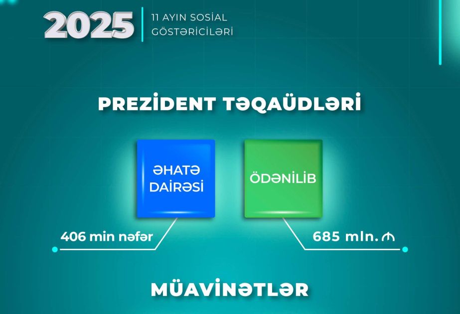 On bir ayda müavinətlər üzrə 1 milyard 66 milyon, Prezident təqaüdləri üzrə 685 milyon manat ödənilib