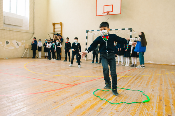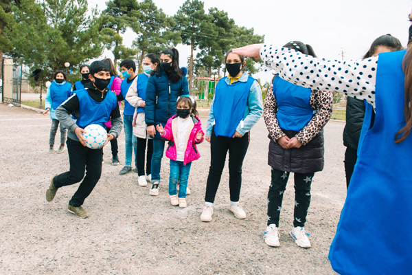 Ayaq Qərvənd kəndi tam orta məktəbinin həyətində “ASAN könüllüləri”nin müşayiəti ilə bir qrup məktəbli toplarla əyləncəli oyunlar nümayiş etdirirdilər. Üzlərindən gülüş və sevinc hissləri duyulurdu.