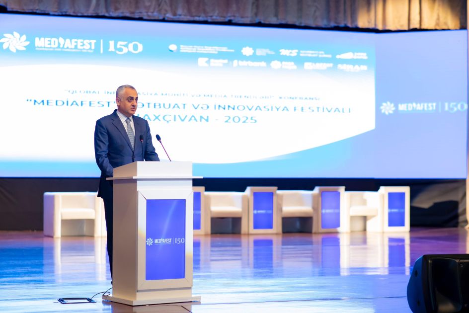 Naxçıvan şəhərindəki Heydər Əliyev Sarayında keçirilən “Qlobal informasiya mühiti və media trendləri” konfransı – “MEDİAFEST-2025”də Naxçıvan Muxtar Respublikasında Azərbaycan Respublikası Prezidentinin səlahiyyətli nümayəndəsi Fuad Nəcəflinin, Azərbaycan Respublikası Medianın İnkişafı Agentliyinin İcraçı direktoru Əhməd İsmayılovun, Prezident Administrasiyasının Qeyri-hökumət təşkilatları ilə iş və kommunikasiya şöbəsinin media ilə iş sektorunun müdiri Kamran Həsənovun və Azərbaycan Mətbuat Şurasının sədri Rəşad Məcidin çıxışları dinlənilib.