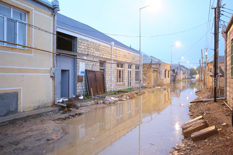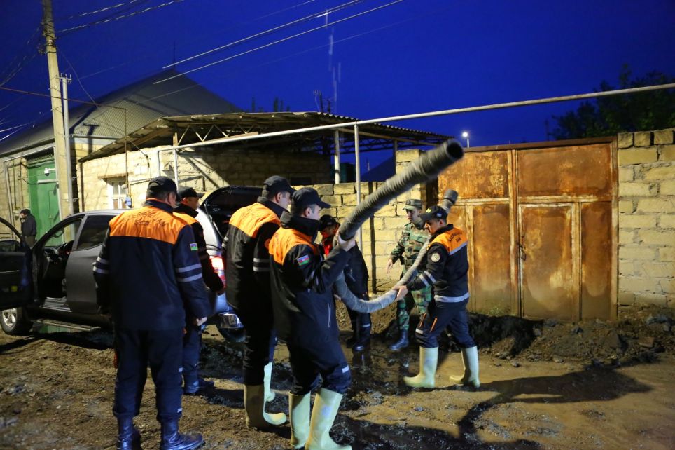 Xüsusi avadanlıqlar vasitəsi ilə həyətlərə və evlərə dolan sular çəkilib, yağış sularının istiqamətinin dəyişdirilməsi üçün ərazidə qazıntı işləri aparılıb. Suların çəkilməsi işinə FHN-nin Gəncə Regional Mərkəzinin əməkdaşları və xüsusi avadanlıqları da cəlb olunub. Sakinlərlə görüşən N.Bayramov aidiyyəti qurumların nümayəndələrinə müvafiq tapşırıqlar verib.