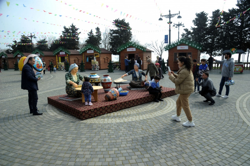 İnsanların ən sıx toplaşma yerləri olan metro stansiyalarının yaxınlığında çadırlar qurularaq bayram yarmarkaları təşkil olunub.
