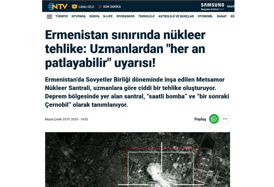 Xəbər telekanalı Böyük Britaniyanın “Daily Mail” nəşrinə istinadla bildirir ki, Metsamor AES-in fəaliyyəti ilə bağlı narahatlıqlar hələ 1995-ci ildə Ermənistanın özündə də səsləndirilmişdi.