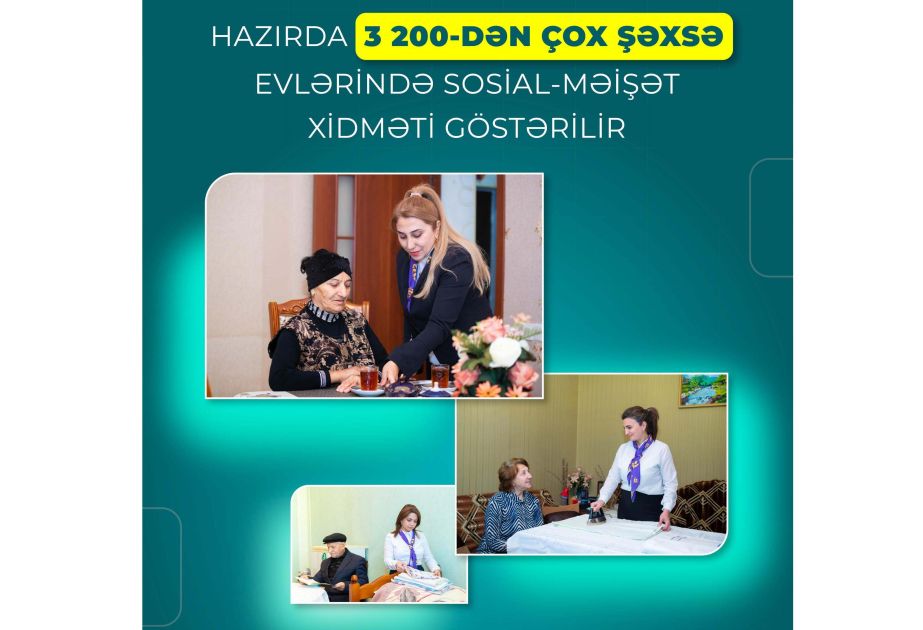 Əmək və Əhalinin Sosial Müdafiəsi Nazirliyinin tabeliyində Sosial Xidmətlər Agentliyi tərəfindən hazırda ölkə üzrə 3 min 244 şəxsə evlərində (səyyar) sosial-məişət xidməti göstərilir.