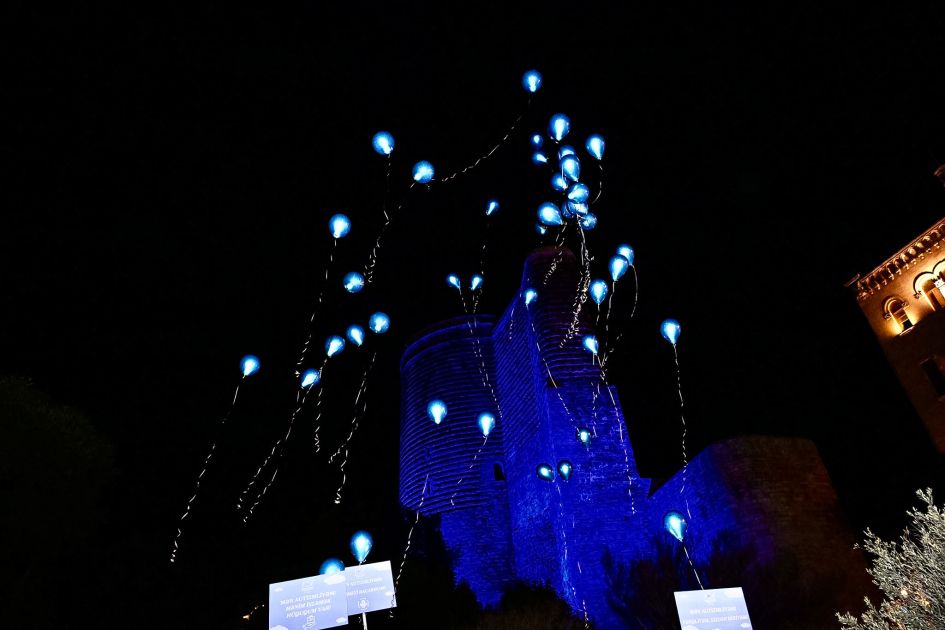 Sonda autizmlə bağlı plakatlar qaldırılıb, "Autizm: Tanı, qəbul et, dəstək ol" şüarı səsləndirilib, havaya mavi şarlar buraxılıb.