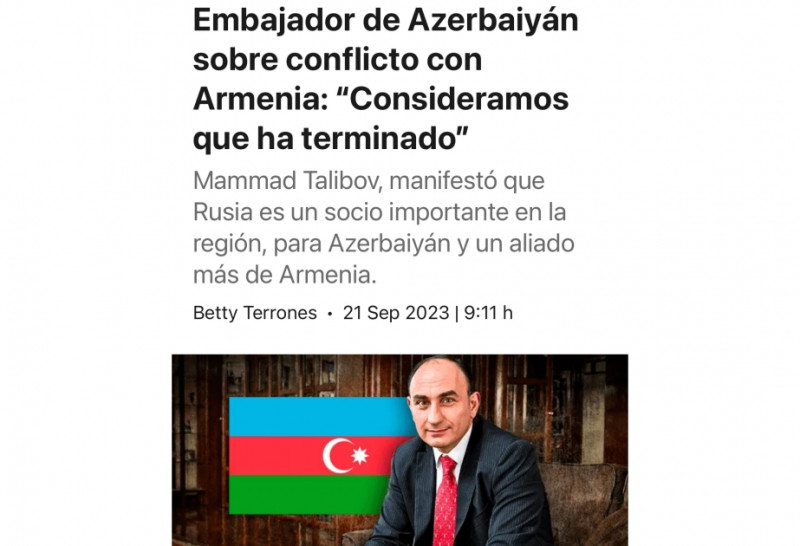 Perunun nüfuzlu “La Republica” gündəlik qəzetində Azərbaycanın bu ölkədəki səfiri Məmməd Talıbovun Azərbaycanın Qarabağ regionunda keçirdiyi lokal xarakterli antiterror tədbirləri ilə bağlı müsahibəsi dərc edilib.