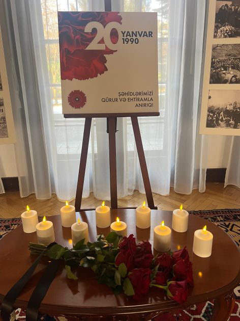 Tədbir iştirakçıları 20 Yanvar faciəsi ilə bağlı səfirlikdə yaradılmış guşənin önünə çiçəklər düzüb, Azərbaycanın müstəqilliyi və ərazi bütövlüyü uğrunda canını fəda etmiş şəhidlərimizin əziz xatirəsini bir dəqiqəlik sükutla yad ediblər.