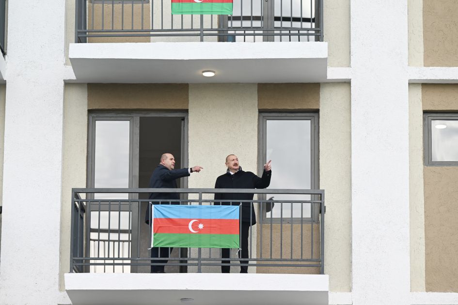 Sonra Prezident İlham Əliyev və birinci xanım Mehriban Əliyeva Ağdam şəhərinə köçən sakinlərlə görüşdülər.