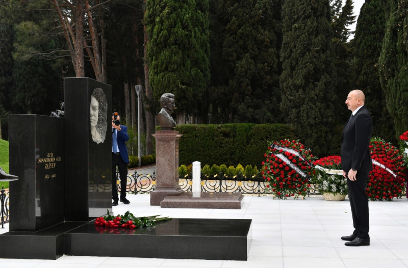 Tanınmış dövlət xadimi Əziz Əliyevin və professor Tamerlan Əliyevin də xatirələri yad edilib, məzarları üstünə gül dəstələri düzülüb.