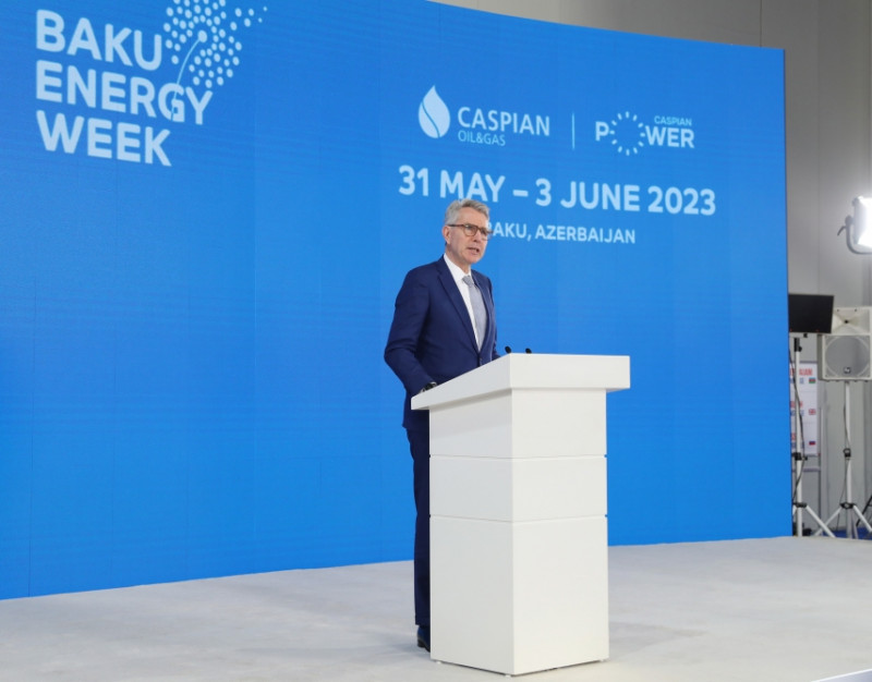 Burada Bakı Enerji Həftəsinin təşkilat komitəsi adından sizi salamlayıram. Bu il 320 fərqli şirkət 35 ölkəni təmsil edir və bu da toplam olaraq keçən ilin sərgisi ilə müqayisədə 25-30 faiz artım deməkdir. Budəfəki Bakı Enerji Həftəsi, eyni zamanda, önəmli bir hadisə ilə - Azərbaycanın Ümummilli Lideri Heydər Əliyevin yubileyi ilə üst-üstə düşür. Prezident Əliyev 2023-cü ili “Heydər Əliyev İli” elan edib və buna görə də bütün sərgilərdə, əlbəttə ki, bu mövzuya ayrıca xüsusi bir diqqət yetiriləcəkdir. Sərgi çərçivəsində Ulu Öndərin 100 illik yubileyinə həsr olunmuş stendimiz də vardır.