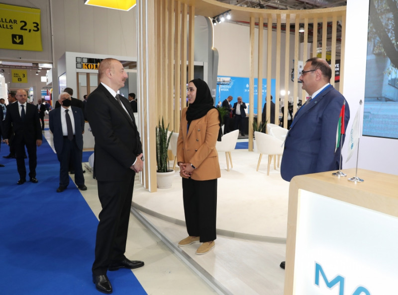 Prezident İlham Əliyev Birləşmiş Ərəb Əmirliklərinin (BƏƏ) “MASDAR” şirkətinin stendinə də baxdı. “MASDAR” bərpaolunan enerji və yaşıl hidrogen texnologiyalarının inkişafını və tətbiqini inkişaf etdirərək dünyada bu sahənin ən qabaqcıl şirkətlərindən biridir. 2006-cı ildə yaradılan “MASDAR” bu gün 40-dan çox ölkədə fəaliyyət göstərir və onlara təmiz enerji məqsədlərinə nail olmaqda və davamlı inkişafda kömək edir. Şirkət Azərbaycanla ümumi gücü 10 qiqavatadək olan bərpaolunan enerji mənbələri layihələri üzrə müqavilələr imzalayıb. Şirkət hazırda gücü 230 meqavat olan Qaradağ Günəş Elektrik Stansiyasının inşası layihəsini icra edir.