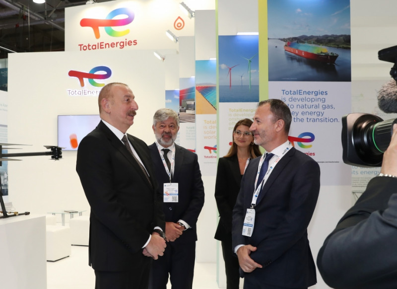 Dövlətimizin başçısı Fransanın “TOTAL” şirkətinin stendinə də baxdı. “TOTAL” 1996-cı ildən Azərbaycanda fəaliyyət göstərir və enerji sektorunda fəal iştirak edir. Şirkət insanların rifahının yüksəldilməsi üçün dayanıqlı inkişafı bütün aspektlərdə öz strategiyasının, layihələrinin və əməliyyatlarının əsası hesab edir və Birləşmiş Millətlər Təşkilatının Dayanıqlı İnkişaf Məqsədlərinin dəstəklənməsində meyar olmağa çalışır.