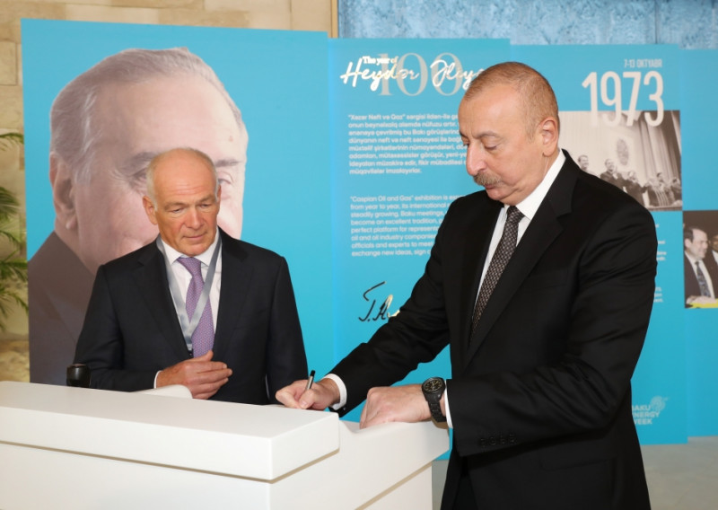 Azərbaycanda beynəlxalq sərgilərin keçirilməsi təşəbbüsü Ümummilli Lider Heydər Əliyev tərəfindən irəli sürülüb. Ulu Öndər 1994-cü ildən təşkil edilən sərgilərə daim dəstək verib. Bu il xalqımız müasir Azərbaycanın qurucusu Ümummilli Lider Heydər Əliyevin 100 illik yubileyini qeyd edir. Bu əlamətdar hadisə Bakı Enerji Həftəsinin proqramında da öz əksini tapır. Həftə çərçivəsində Ulu Öndər Heydər Əliyevin anadan olmasının 100 illiyinə həsr edilmiş poçt markası buraxılıb. Sərgidə Ümummilli Liderin 100 illik yubileyinə həsr olunmuş xüsusi stend də nümayiş edilir.