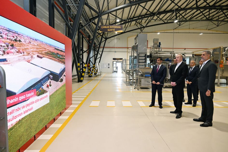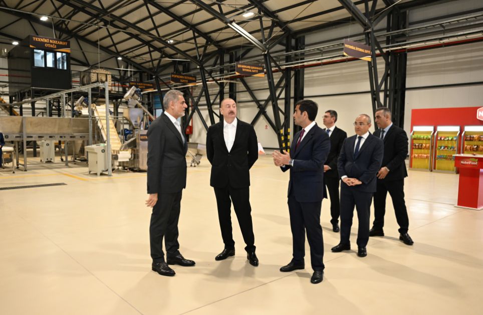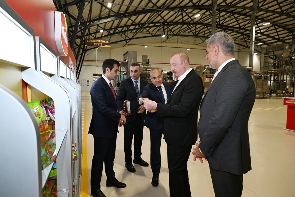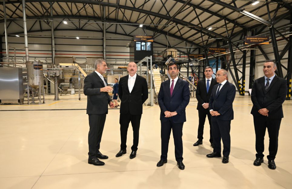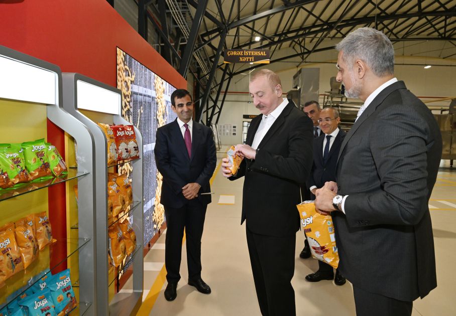 Prezident İlham Əliyev Bakıda müxtəlif növ və çeşiddə qəlyanaltı məhsullarının istehsalı zavodunun açılışında iştirak edib VİDEO