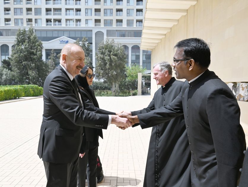 AZƏRTAC xəbər verir ki, dövlətimizin başçısını və birinci xanımı Azərbaycanda Katolik Kilsəsinin apostol prefekti, yepiskop Vladimir Fekete qarşıladı.