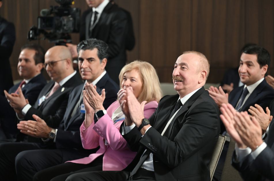 Bildiyiniz kimi, bu gün çox xüsusi bir qonağımız var və onu yenidən səhnədə salamlamaq mənim üçün böyük şərəfdir - Azərbaycan Respublikasının Prezidenti, Zati-aliləri cənab İlham Əliyev.