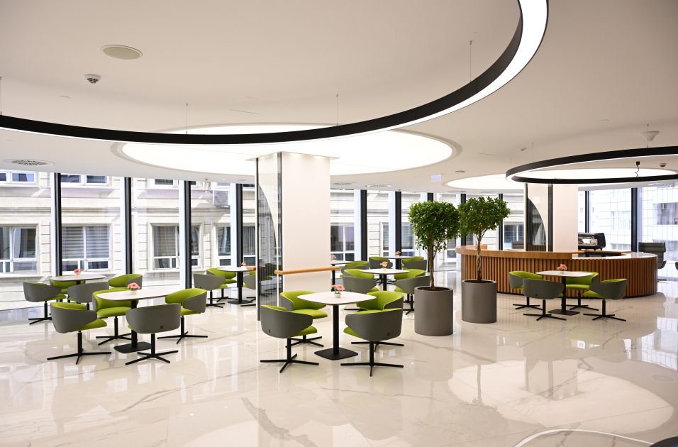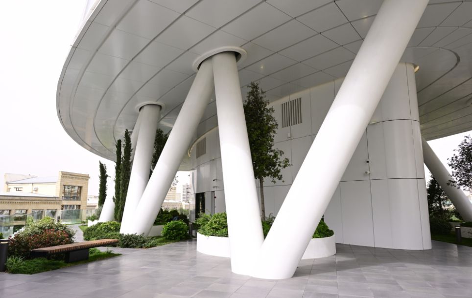 Binanın 5-ci mərtəbəsində 1200 kvadratmetrlik asma bağ salınıb, müxtəlif növ ağac və dekorativ gül kolları əkilib. 500 kvadratmetrlik açıq sahədə əməkdaşların istirahəti və gəzintisi üçün guşə yaradılıb, kafe inşa olunub.