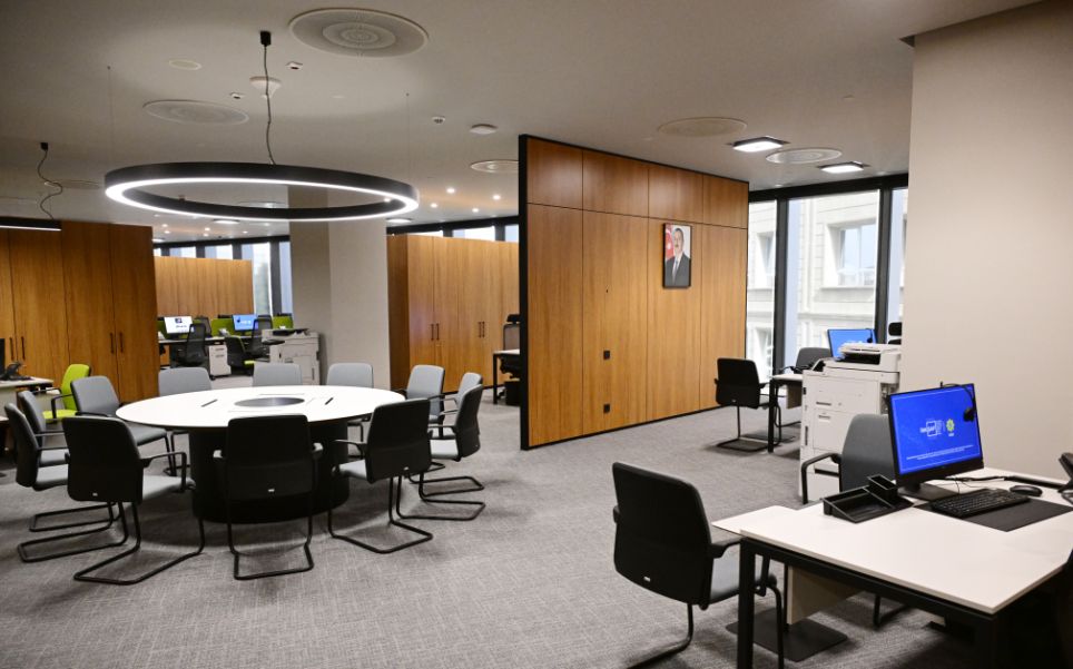 Bildirildi ki, ümumi sahəsi 25 min kvadratmetr olan 18 mərtəbəli binada komitənin struktur bölmələrinin əməkdaşlarının yüksək səviyyədə çalışması üçün hərtərəfli şərait yaradılıb.