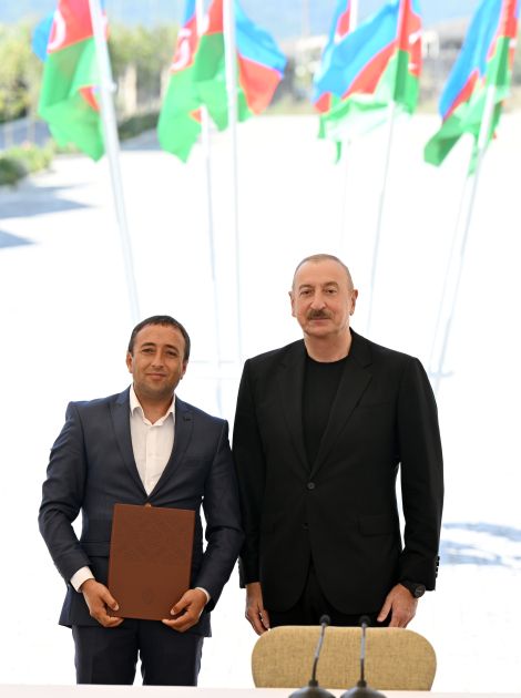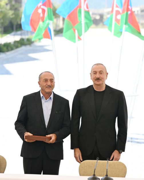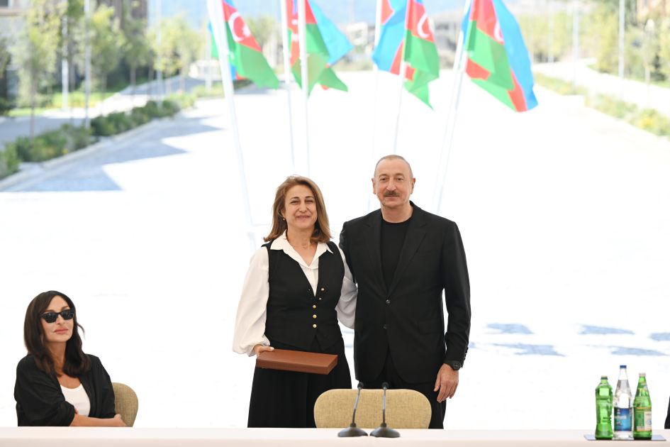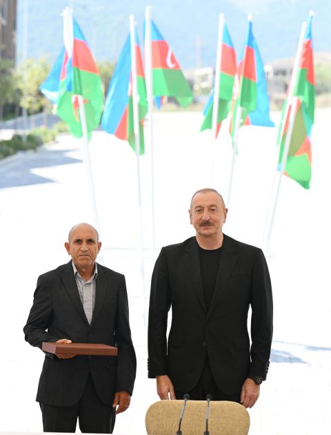 Bu gün sizin həyatınızda tarixi bir gündür. Doğma Vətənə, doğma şəhərə 32 ildən sonra qayıdırsınız və bu münasibətlə sizi ürəkdən təbrik edirəm. Biz ədaləti bərpa etdik, haqqımızı bərpa etdik və bugünkü tədbir bir daha onu göstərir ki, Azərbaycan xalqı iradəli xalqdır. Azərbaycan xalqı öz doğma torpağına bağlıdır və bütün çətinliklərə baxmayaraq, işğal dövründə biz nəinki inamımızı itirməmişik, hər birimiz - bütün xalq hər gün bu müqəddəs günü yaxınlaşdırırdı.