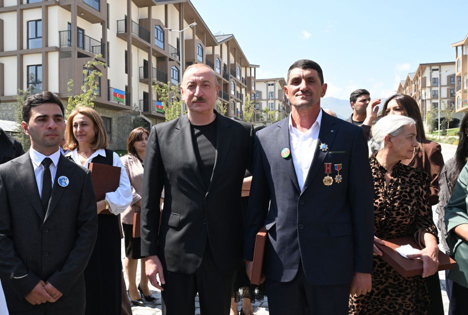 Prezident İlham Əliyev: Köçkünlük dövrü bitdi. İndi burada yerləşirsiniz. O biri yaşayış kompleksləri də tikiləcək. Bura gözəl bir şəhər olacaq.