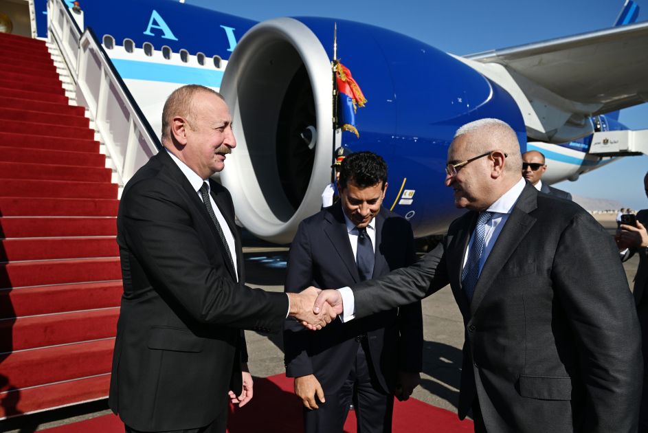 AZƏRTAC xəbər verir ki, Şarm əl-Şeyx şəhərinin beynəlxalq aeroportunda dövlətimizin başçısının şərəfinə fəxri qarovul dəstəsi düzülmüşdü.