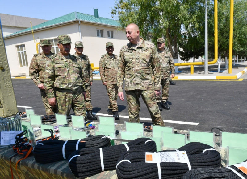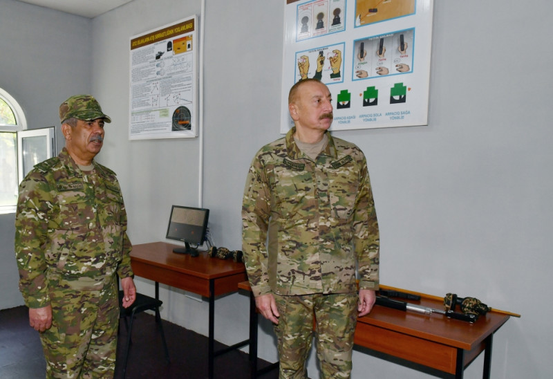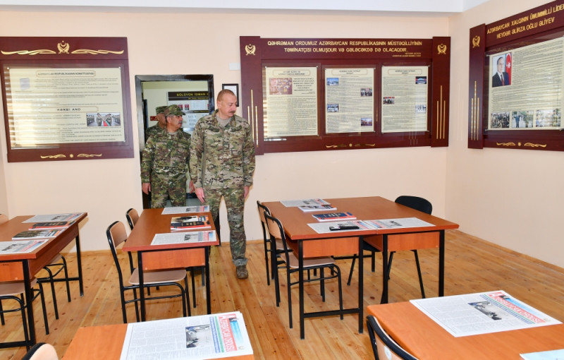 Sonra Ali Baş Komandan əsgər yataqxanasında yaradılan şəraitlə tanış oldu, oradakı silah otağı, əşya anbarı, şəxsi heyətin mənəvi-psixoloji hazırlığı üçün ideoloji iş və digər inzibati otaqlara baxdı. Silah otağında Prezident İlham Əliyevə əksəriyyəti Azərbaycan istehsalı olan silah nümunələrinin taktiki-texniki xüsusiyyətləri barədə məlumat verildi.
