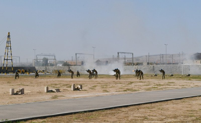 Sonra Prezident İlham Əliyev şəxsi heyətin atış vərdişlərini təkmilləşdirməsi üçün təyin olunmuş qapalı atış şəhərciyinə baxdı. Məruzə olundu ki, burada tapança, pnevmatik silah və kiçikçaplı tüfənglərdən atəş açmaq üçün nəzərdə tutulmuş 25 metr uzunluğunda iki atış zolağı, həmçinin atışın nəticələri əks olunan monitor mövcuddur.