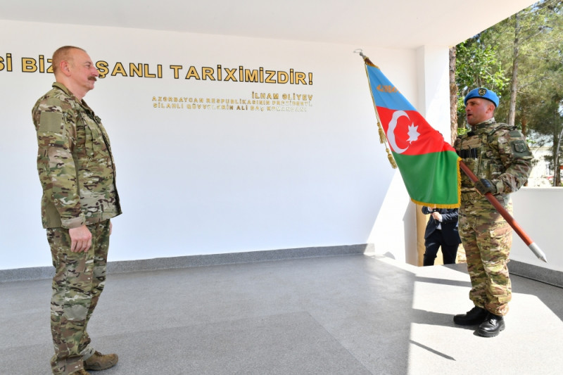 Müzəffər Ali Baş Komandan İlham Əliyev Döyüş bayrağını hərbi hissənin komandirinə təqdim etdi.