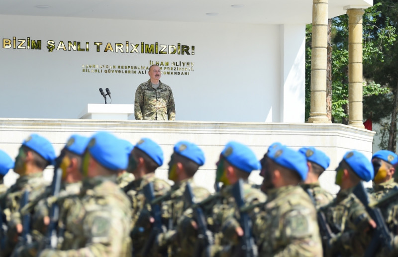 Bundan sonra da Ordumuzun daha da gücləndirilməsi üçün bütün lazımi tədbirlər görüləcək. Azərbaycanın düşmənləri bunu bilir, görür, bilməlidir və görməlidir. Məhz buna görə bizə qarşı edilən istənilən təxribat cavabsız qalmır, hər bir təxribata layiqli cavab verilir, istər hərbi cavab, istər siyasi cavab. Bu gün Azərbaycan o ölkələrdəndir ki, öz müqəddəratını özü müəyyən edir, heç kimdən asılı deyil və olmayacaq, öz sözünü açıq deyir və müstəqil siyasət aparır. Yəni, bizim ölkəmiz, sözün əsl mənasında, müstəqil ölkədir, çünki müstəqil siyasət aparmaq iqtidarındadır və bizə bu gücü verən, ilk növbədə, bizim hərbi potensialımızdır.
