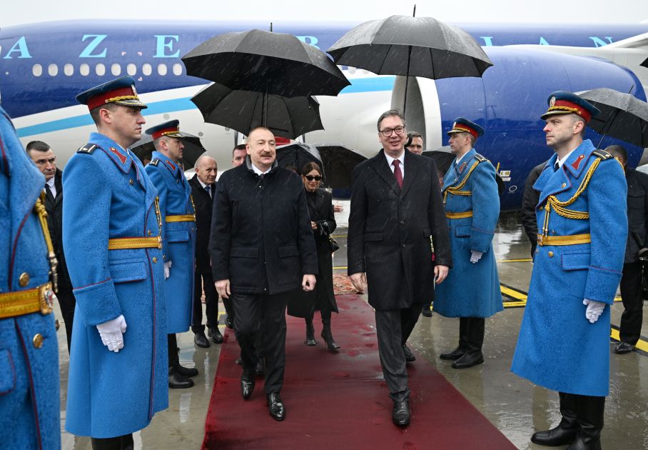 AZƏRTAC xəbər verir ki, Belqrad şəhərinin Nikola Tesla Hava Limanında dövlətimizin başçısının şərəfinə fəxri qarovul dəstəsi düzülmüşdü.
