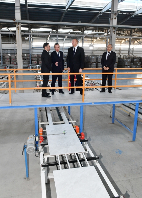 Məlumat verildi ki, sənaye parkının 20 hektardan çox ərazisində Çinin qabaqcıl texnologiyalarının tətbiqi ilə yüksəkkeyfiyyətli, müxtəlif ölçülərdə keramik plitələrin istehsalı həyata keçiriləcək. Yüz faiz Çin kapitallı müəssisə üçün investisiya dəyəri 40 milyon ABŞ dolları, işçi sayı 400 nəfər nəzərdə tutulsa da, hazırda müəssisəyə 50 milyon ABŞ dolları məbləğində investisiya yatırılıb və 484 nəfər işlə təmin olunub. İllik istehsal gücü 18 milyon kvadratmetr olan müəssisənin məhsulları daxili bazarda satılmaqla yanaşı, region və MDB ölkələrinə ixrac olunacaq.