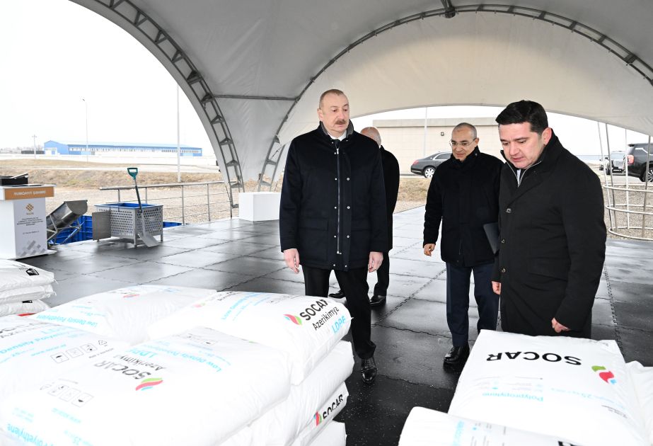Prezident İlham Əliyev Sumqayıt Sənaye Parkında polipropilen və laminatlı kisə istehsalı müəssisəsinin təməlini qoyub