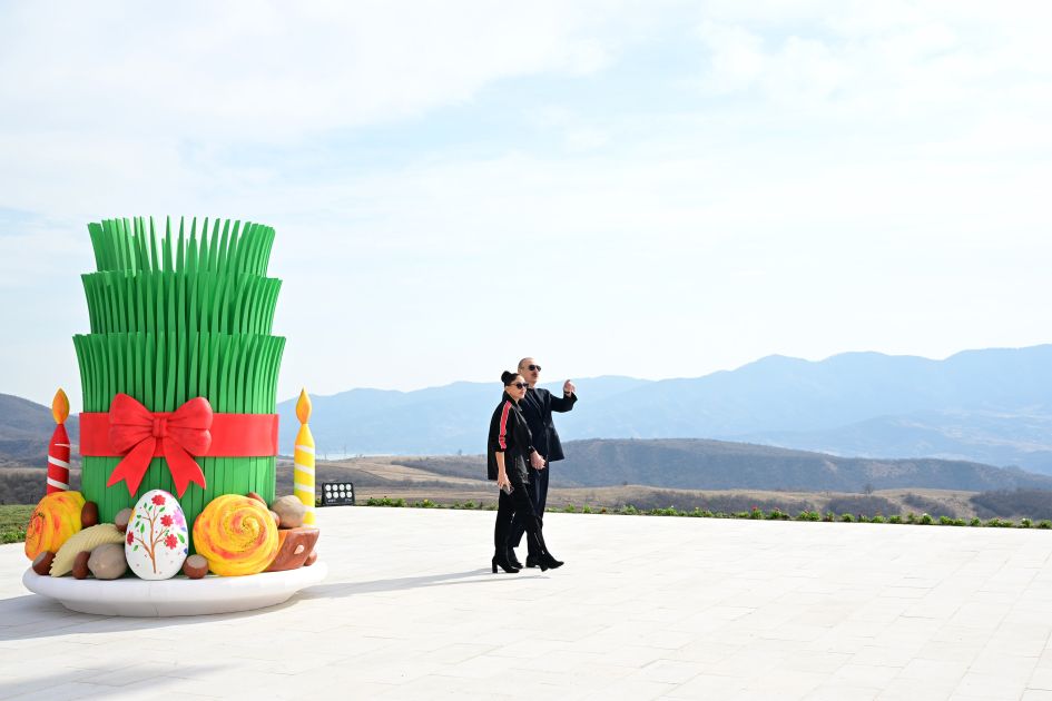 Sonra dövlətimizin başçısı və birinci xanım kənd sakinləri ilə birlikdə Novruz tonqalını alovlandırdılar.