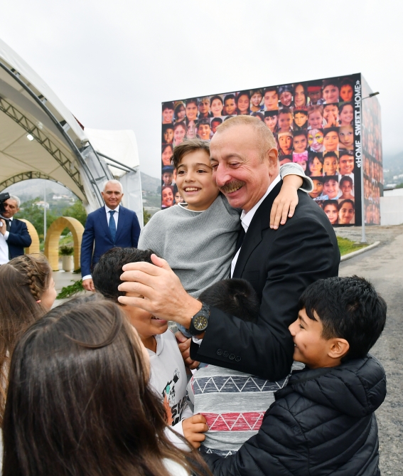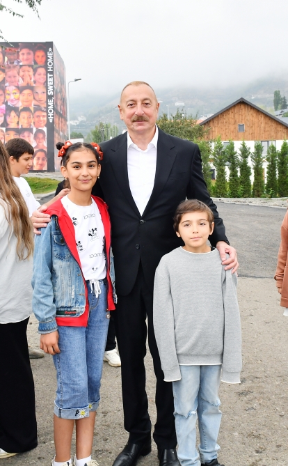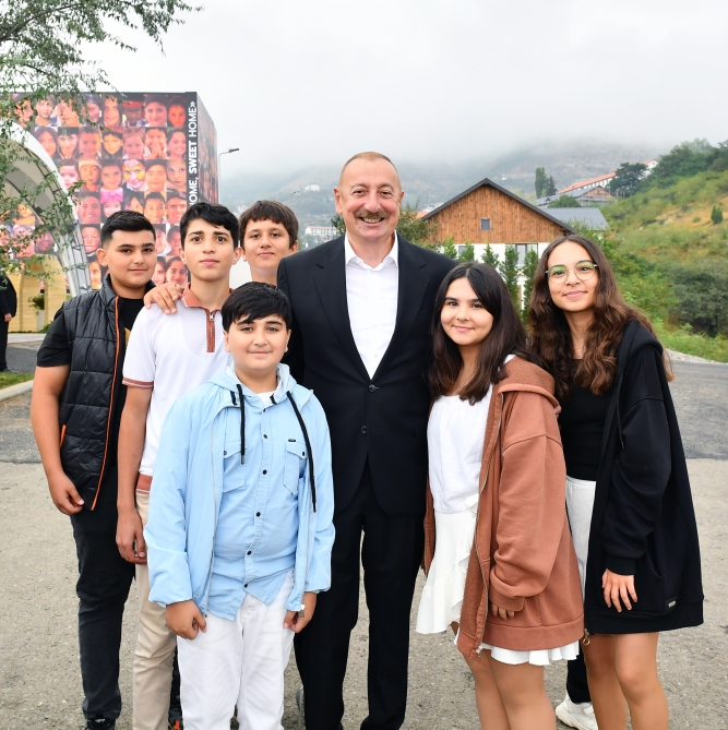 Prezident İlham Əliyev: Məktəb 15 sentyabrda açılacaq. Biz dünən gördük, məktəb də gözəldir, 2 nömrəli məktəb, məktəb avtobusu var. Yəqin ki, gələn ilə çatdıracağıq, çalışacağıq 1 nömrəli məktəb də inşa edilsin. Ona görə uşaqlar da sentyabrın 15-dən məktəbə getməyə hazır olsunlar. Siz Bakıda yaşamısınız, Sumqayıtda yaşamısınız yəqin ki, elə deyilmi? Yəni, böyük şəhərlərdə yaşamısınız. Amma indi gəlmisiniz nisbətən kiçik olan belə şəhərə. Özünüzü yaxşı hiss edirsiniz?