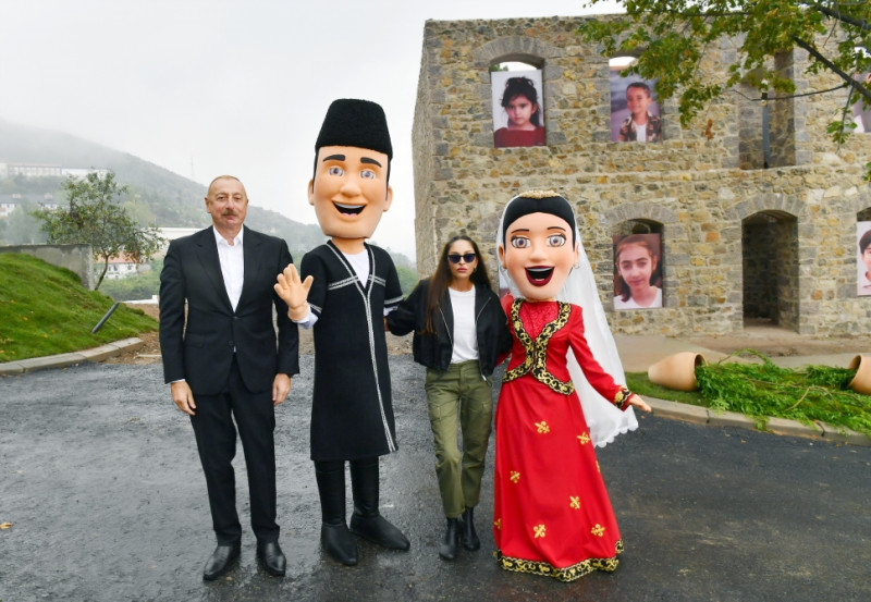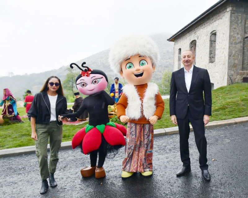 Prezident İlham Əliyev: Siz buraya biz təzə gələndə də gəlmişdiniz, ermənilərin qoyduqlarını görmüşdünüz nə gündəydi. Bir il, heç bir il keçməyib, oktyabrda başlamışıq bərpa işlərinə, siz burada olmusunuz.
