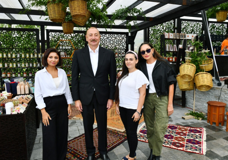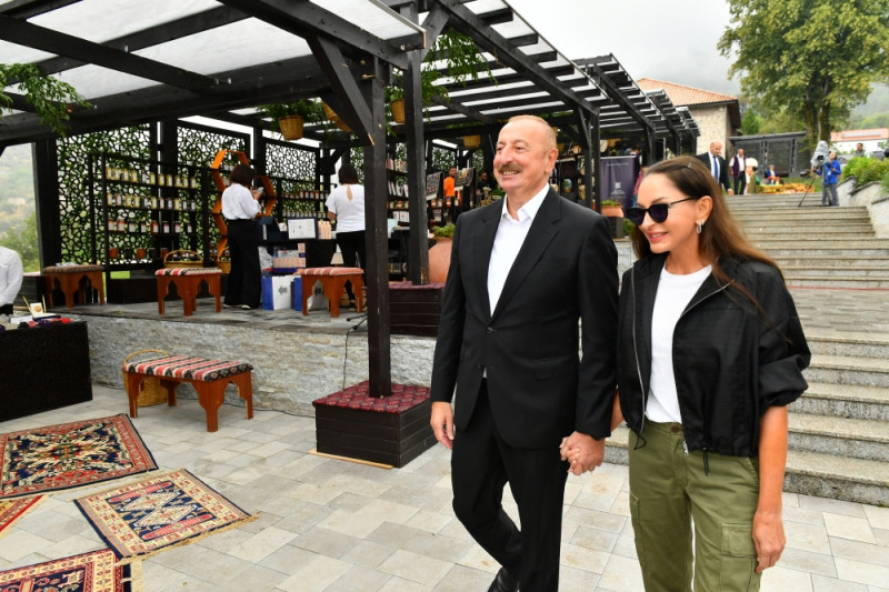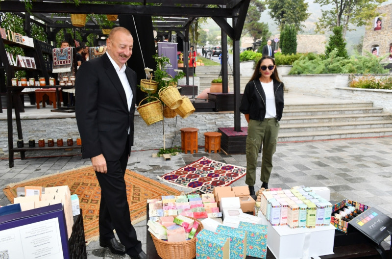 Prezident İlham Əliyev və birinci xanım Mehriban Əliyeva “Laçın Şəhəri Günü” bayram şənliklərində təşkil olunan sərgilərlə tanış olub, sənətkarlıq nümunələrinə baxıb, tamaşalar izləyib, tədbir iştirakçıları ilə söhbət ediblər.