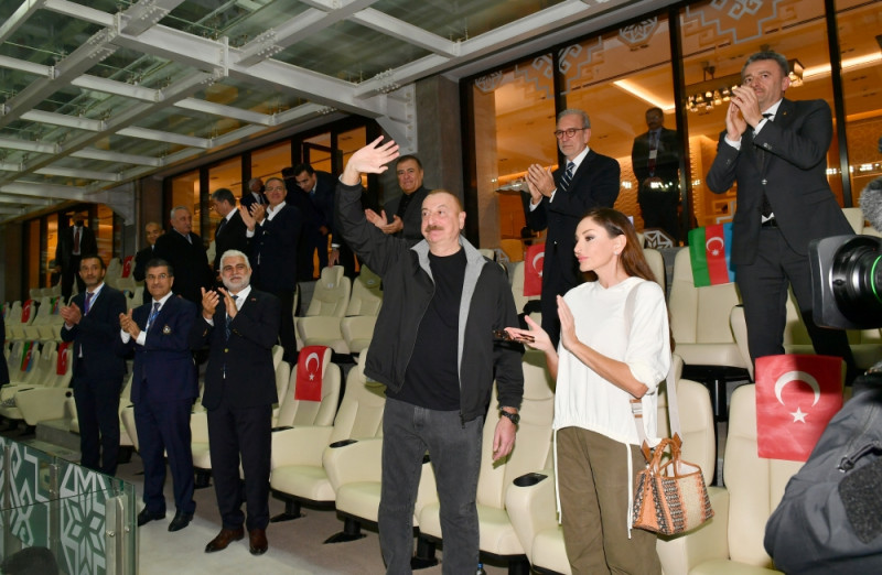 AZƏRTAC xəbər verir ki, Azərbaycan Respublikasının Prezidenti İlham Əliyev və birinci xanım Mehriban Əliyeva stadionda oyuna baxıblar.