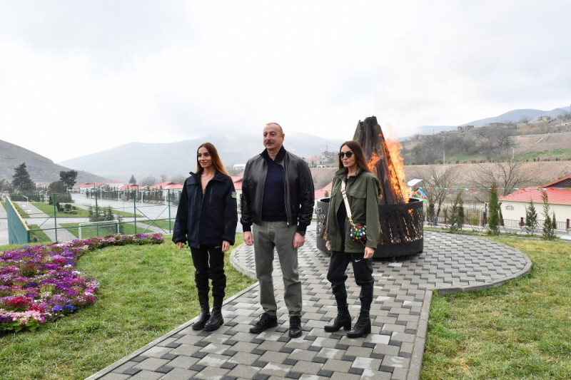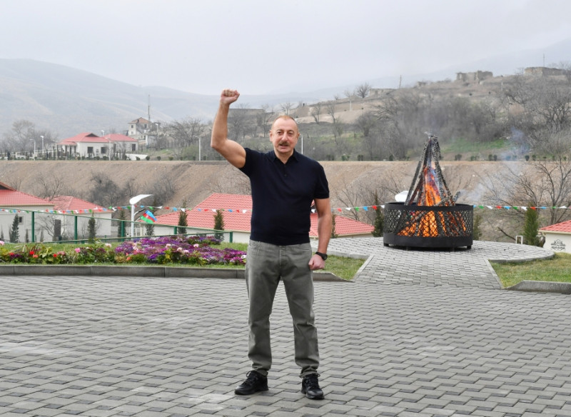Üçüncü dəfədir ki, Azərbaycan xalqına Novruz təbriklərimi doğma Qarabağ diyarından deyirəm. Bu, böyük xoşbəxtlikdir. Bu xoşbəxtliyi bizə bəxş edən qəhrəman şəhidlərimizin əziz xatirəsini bu gün biz hörmətlə yad edirik. Allah bütün şəhidlərimizə rəhmət eləsin! Bu xoşbəxtliyi bizə bəxş edən qəhrəman Azərbaycan hərbçilərini buradan səmimiyyətlə salamlayıram. Onların canı-qanı bahasına biz doğma torpaqlarımıza qayıtmışıq.