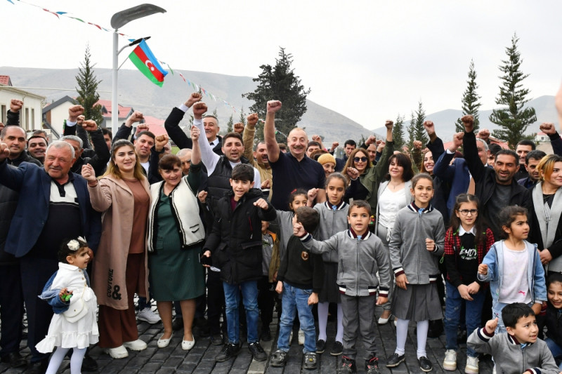 Sonra Prezident İlham Əliyev, birinci xanım Mehriban Əliyeva və Arzu Əliyeva kənd sakinləri ilə görüşüb söhbət etdilər.