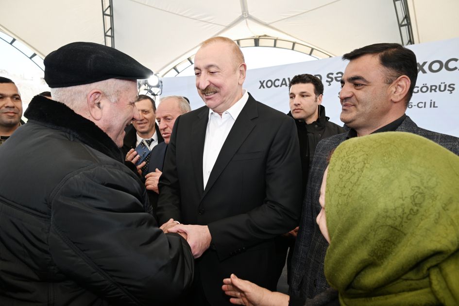 Azərbaycan Respublikasının Prezidenti İlham Əliyev, birinci xanım Mehriban Əliyeva və qızları Arzu Əliyeva fevralın 25-də Xocavənd şəhər və Xocavənd kənd sakinləri ilə görüşüb söhbət ediblər.